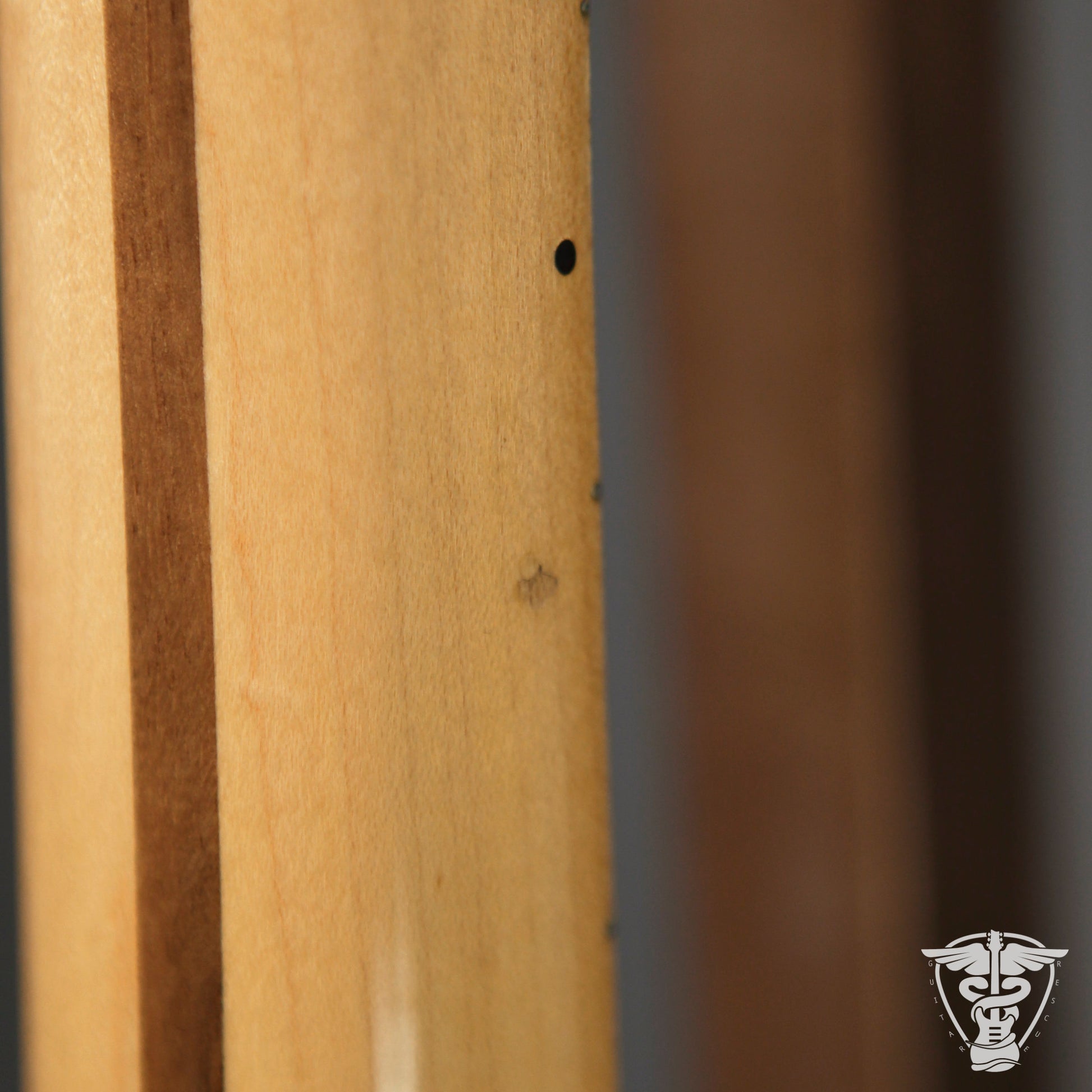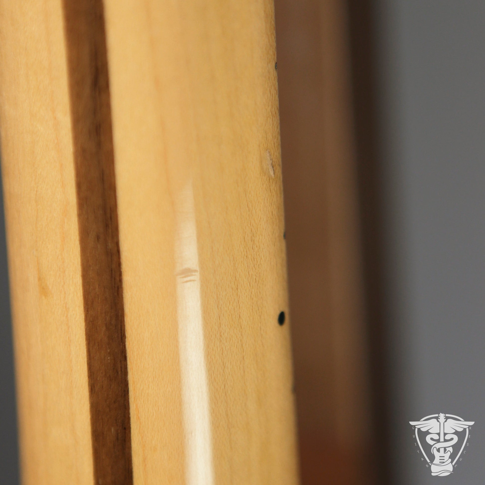 Neck/Headstock: Lacquer wear along neck edges. Two tiny dings on bass side of neck.