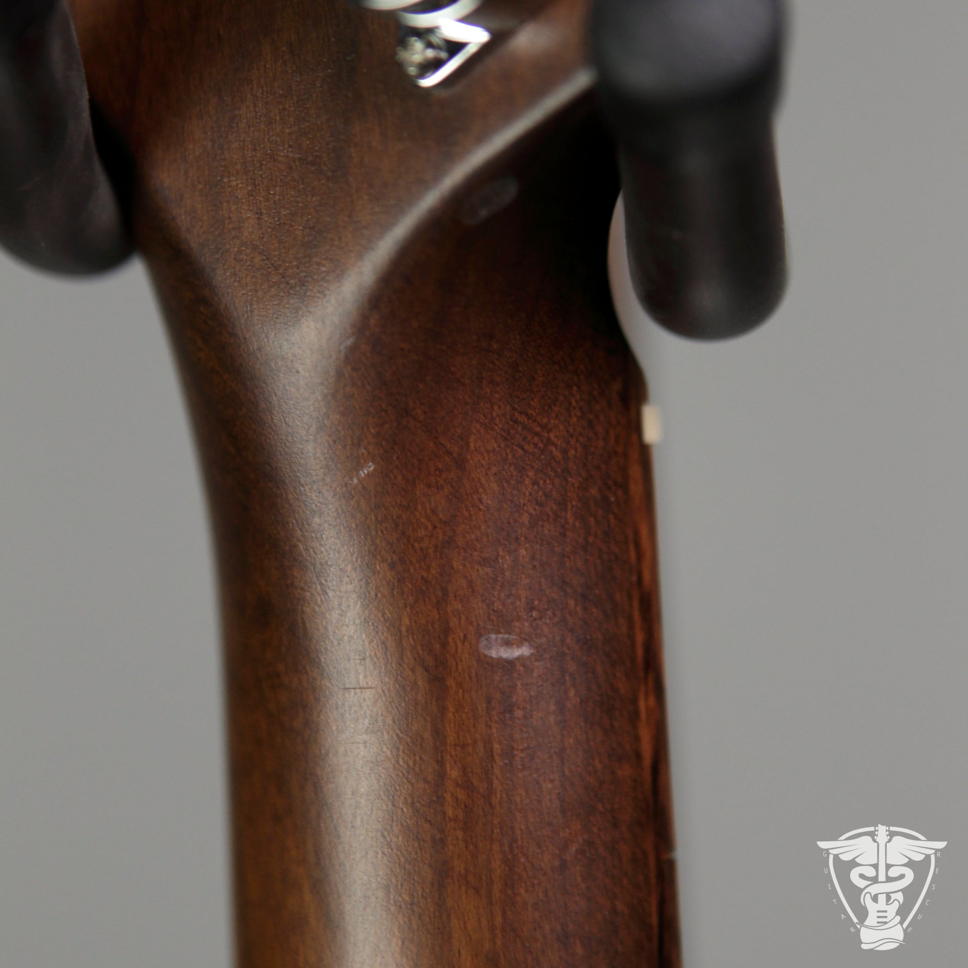 Neck/Headstock: Small ding and scratch in headstock. Tiny ding in neck on bass side near nut.