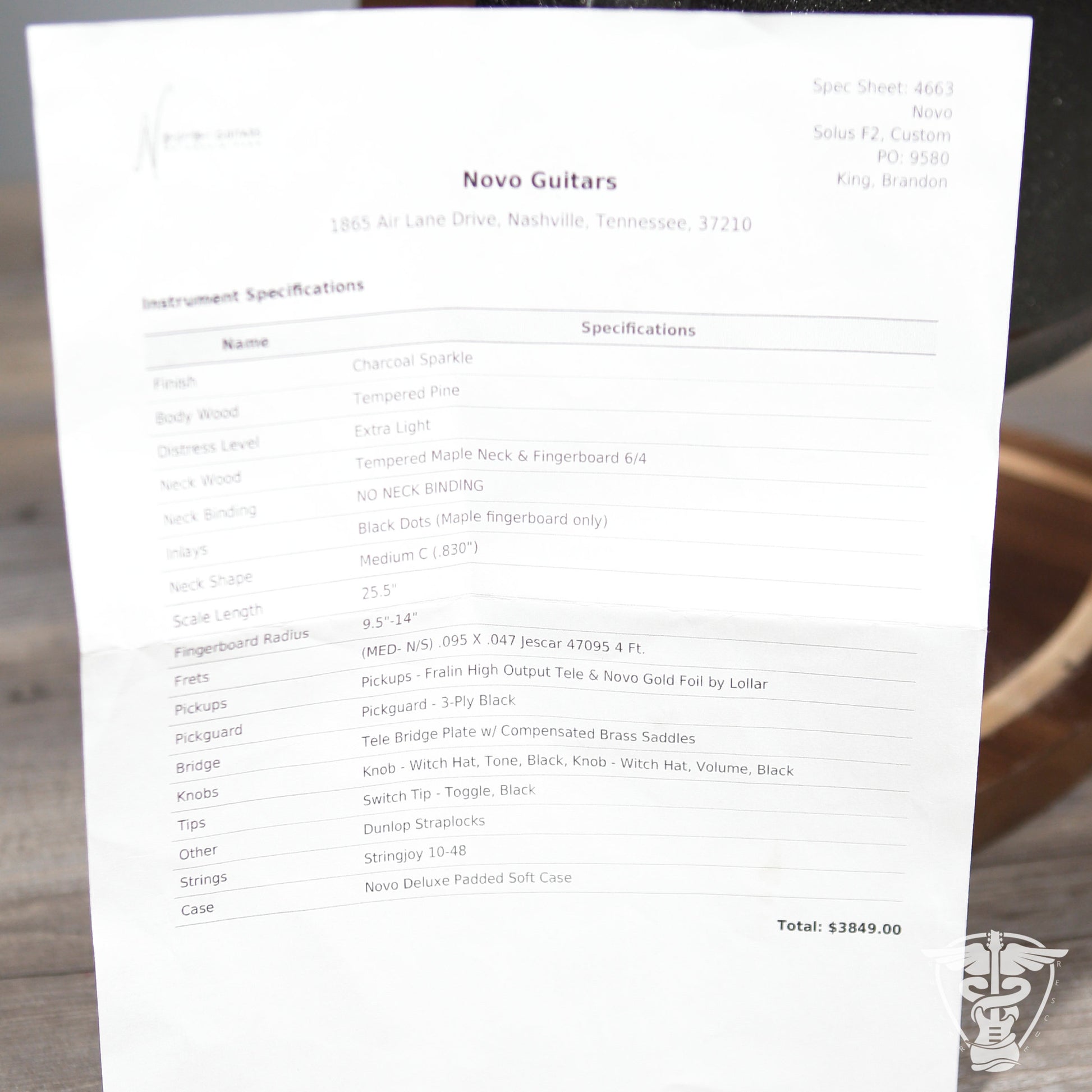 INCLUDES: Spec Sheet, Novo Deluxe Padded Soft Case