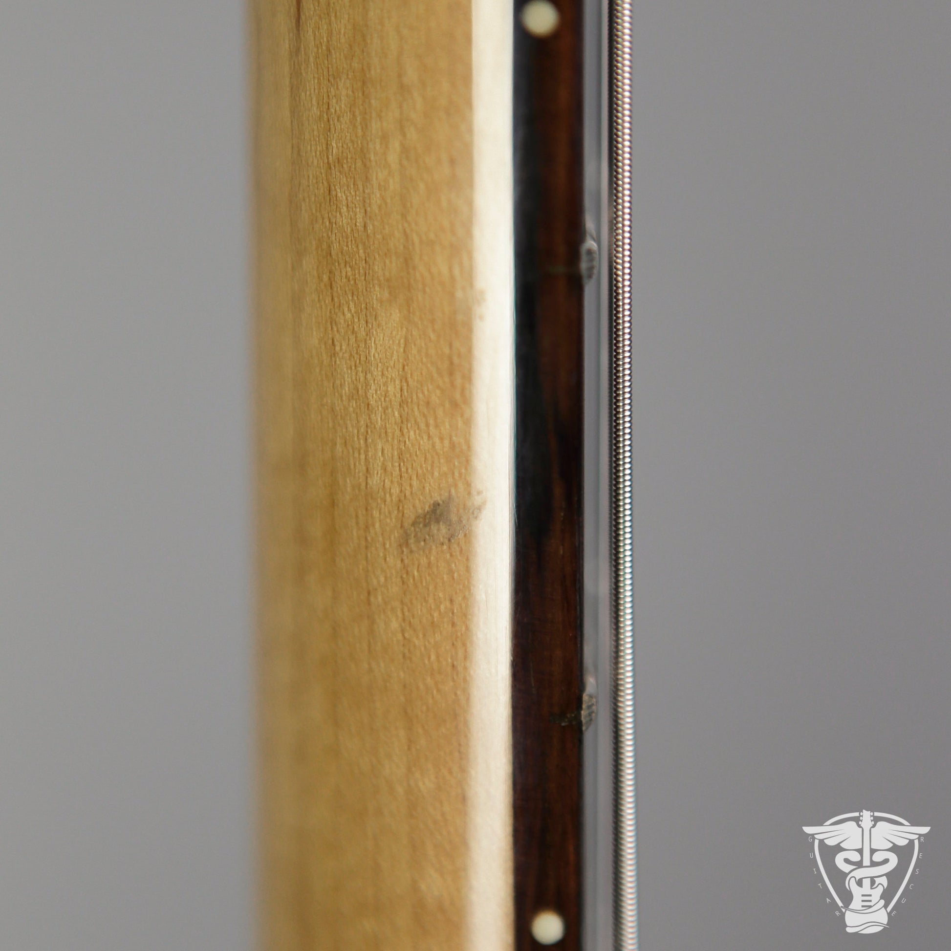 Neck/Headstock: Light ding in bass side of neck. Tiny spots of lacquer blush in headstock.